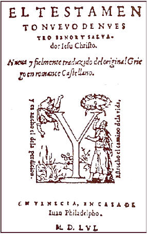 The title page the 1556 New Testament of Juan Perez de Pineda.